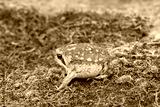 Bushveld rain frog, also known as the common rain frog (Breviceps adspersus) puffing its body