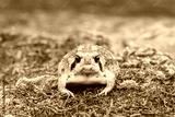 Frontal shot of a cute Bushveld rain frog, also known as the common rain frog (Breviceps adspersus)