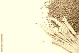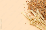 Wheat ears with grains on beige background