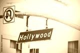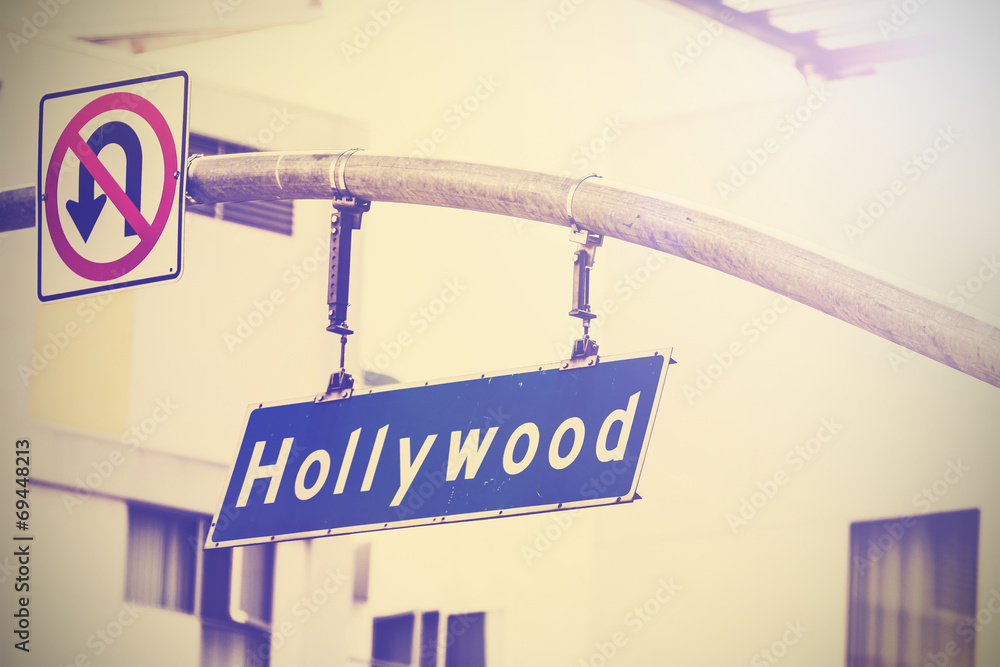 Vintage picture of Hollywood street sign in Hollywood, USA.