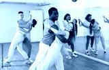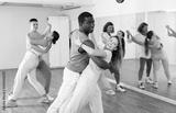Adult male and adult female dancing pair dance in dance hall