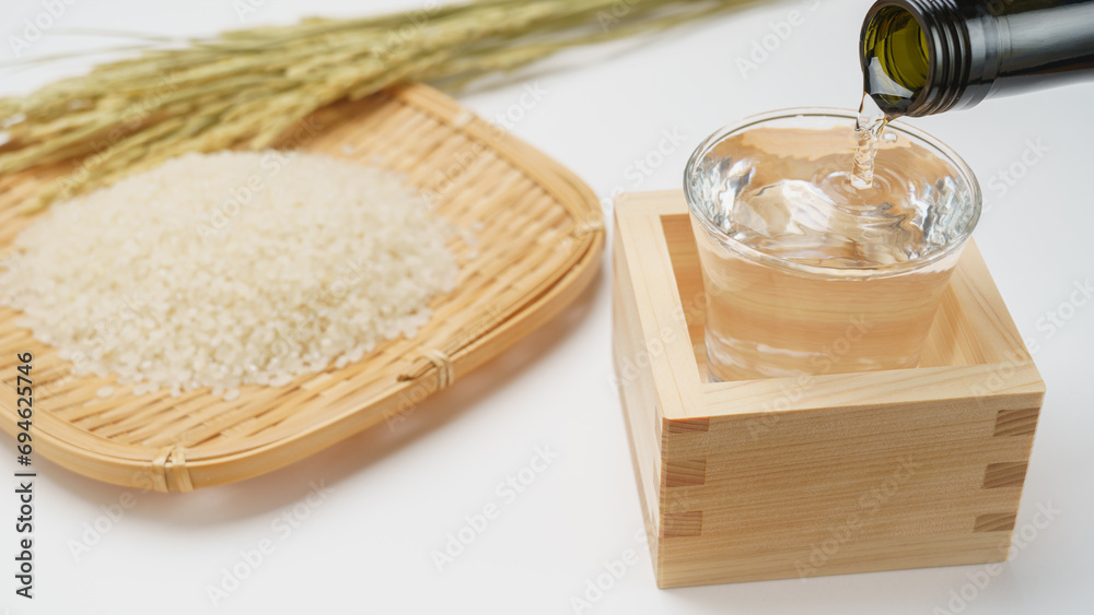 日本酒・冷酒イメージ 酒と白米と稲穂