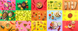 Collage of traditional Mexican dishes on color background