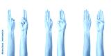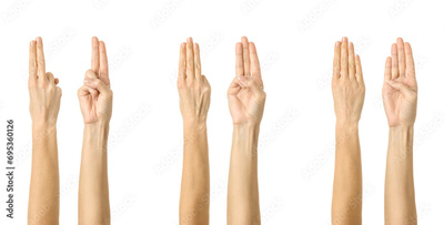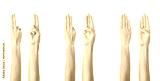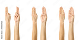 Two, three or four fingers folded together. Multiple images set of female caucasian hand with french manicure showing Fingers folded together gesture
