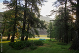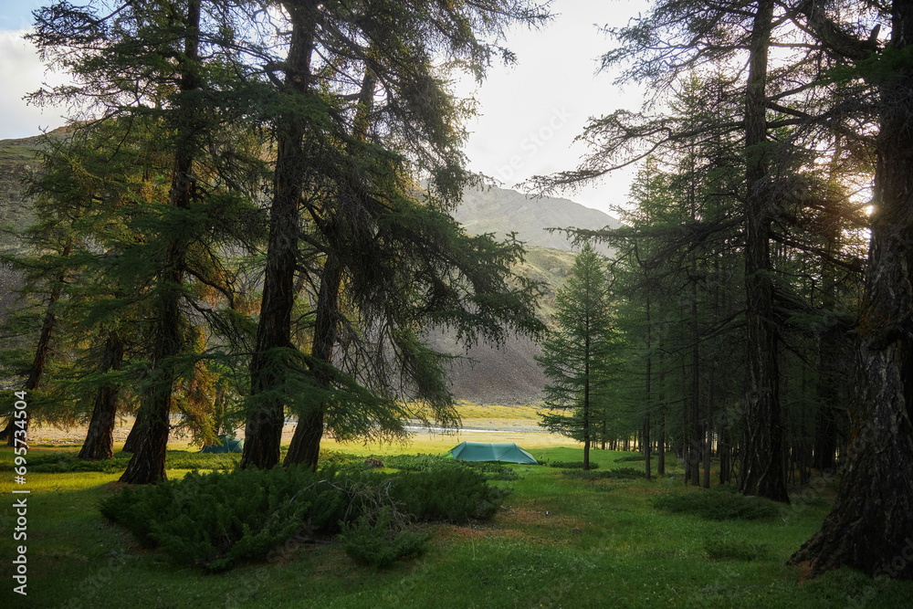 Trip through mountain valley of Altai mountains. Mountain peaks, rivers, lakes and glaciers. Border of Russia and Mongolia, amazing landscape