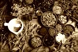 Natural medicine, herbs, mortar