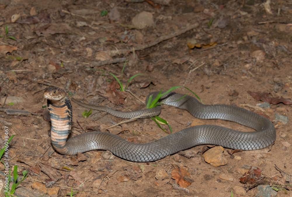A venomous Mozambique Spitting Cobra (Naja mossambica) displaying its signature defensive hood
