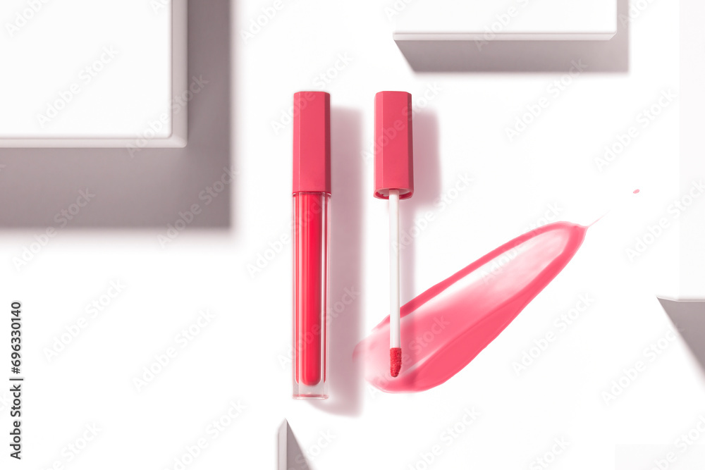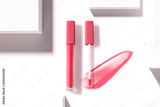 pink cherry candy of lip gloss tint with color shading pallete smudge gel, cosmetic makeup product mockup