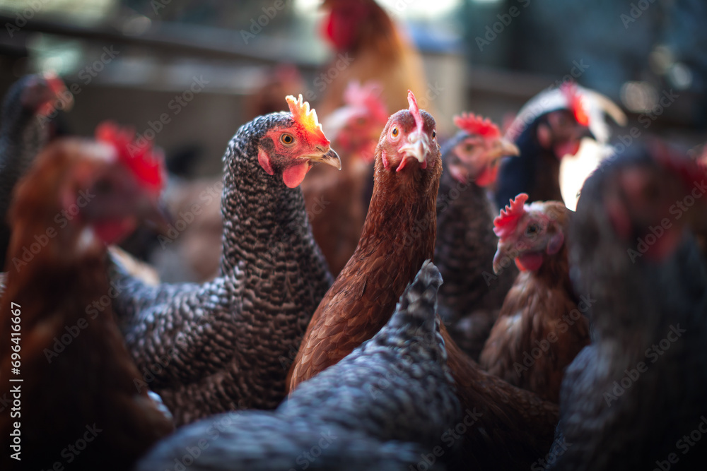 Different Types of Hen in a Domestic Chicken House on Countryside