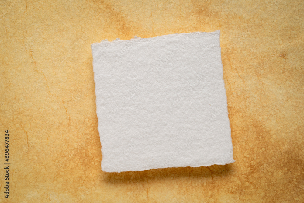 small blank sheet of watercolor paper on a tan toned heavyweight vintage handmade paper