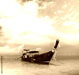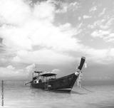 Thai traditional wooden longtail boat and beautiful sand beach in Thailand. Traveling concept.