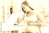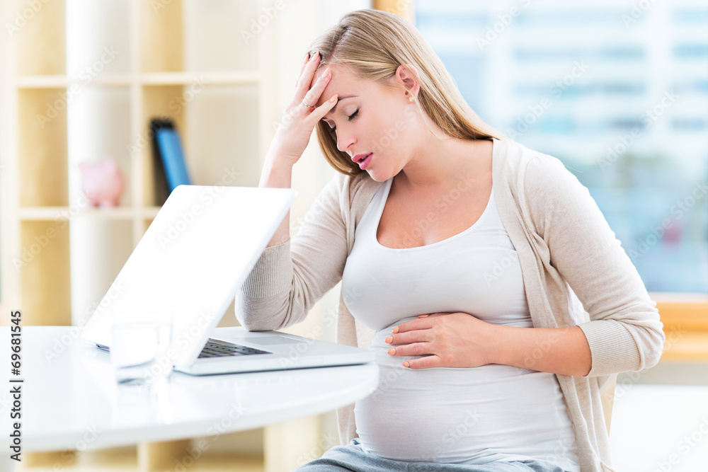 Tired pregnant woman working