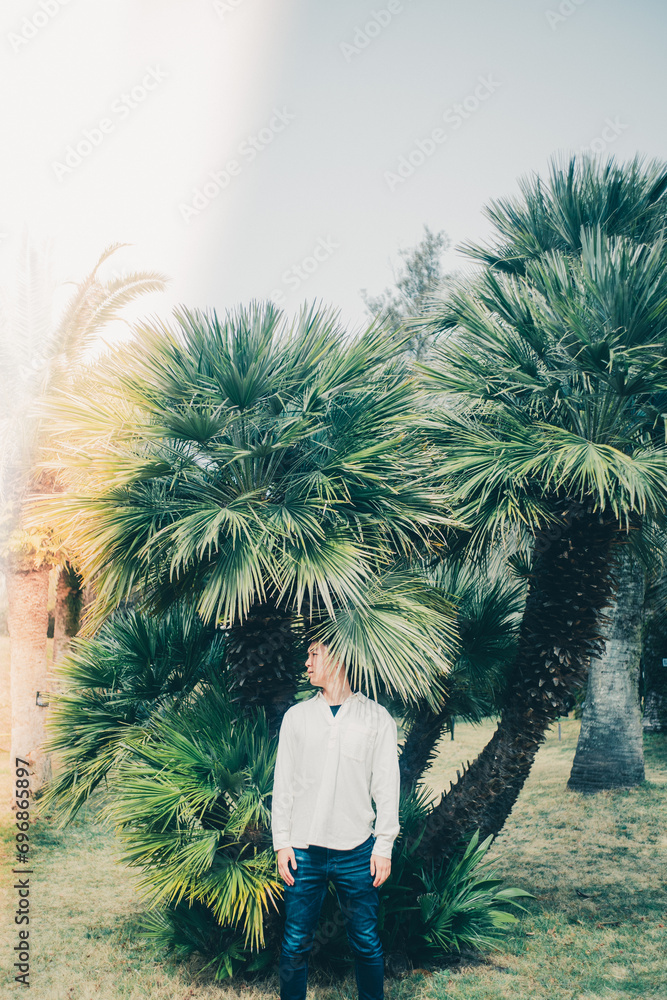 椰子の木と男性