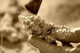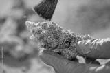 Hand brush trimming Buds of Cannabis in Drying Curing Cannabis flowers buds process Closeup with drying cola pistil trichomes all in buds. Brush for drying curing process Buds of Cannabis.