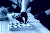 A chef wearing black gloves delicately prepares gourmet canapes, showcasing culinary presentation and food preparation concepts