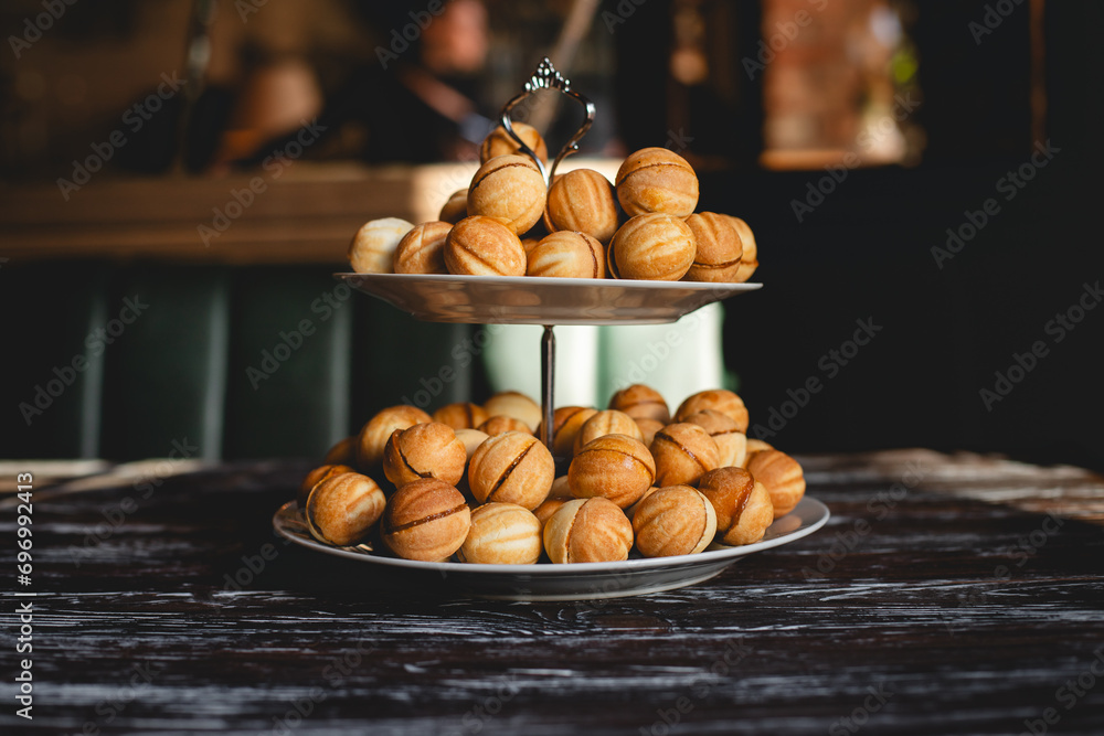 Walnut-shaped cookies with boiled condensed milk. Mocap.