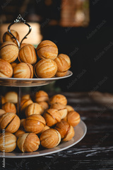 Walnut-shaped cookies with boiled condensed milk. Mocap.