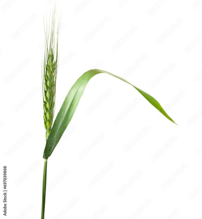 Close-up image of a green wheat spikelet isolated on transparent background.