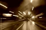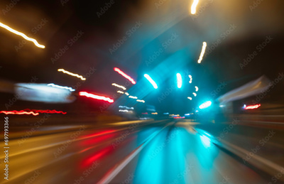 City colorful night lights perspective blurred by high speed of the car. A streak of light, trails.