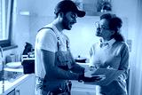 Beautiful young woman signing document while communicating with handyman at the kitchen