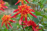 Red and yellow star anemone Dahlia Octopus Sparkle in flower