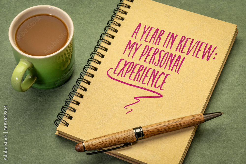 a year in review: my personal experience - a note in a spiral notebook with coffee, end of year retrospective outlook