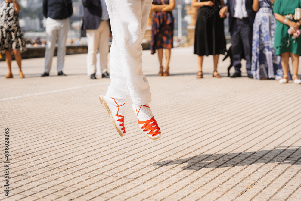 Basque dancer jumping in a celebration in a town in the Basque country