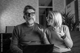 Couple upset headache depressed from family cost got higher holding receipts from supermarket with calculator by rising grocery prices and surging cost as an inflation financial crisis.