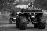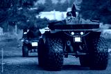 Traveling off-road. A group of tourists on moto-vehicles leaves a tourist base located in the mountains.