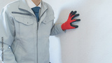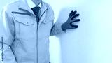 壁紙を点検する作業服の男性|リフォーム調査・見積り イメージ
