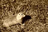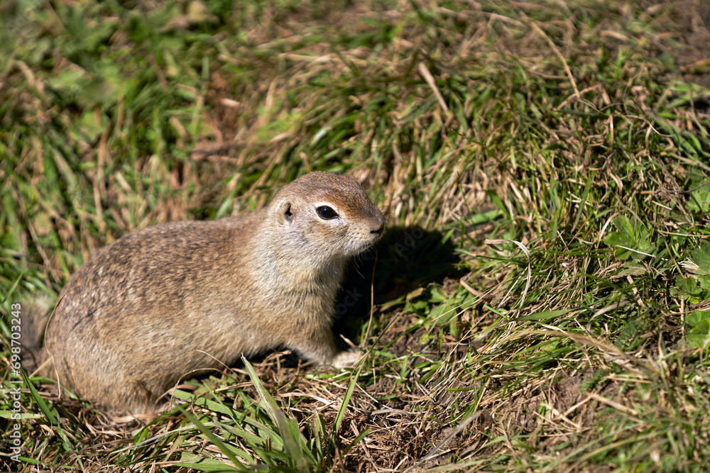 A close-up of a gopher in the mountains of the North Caucasus. Copy space