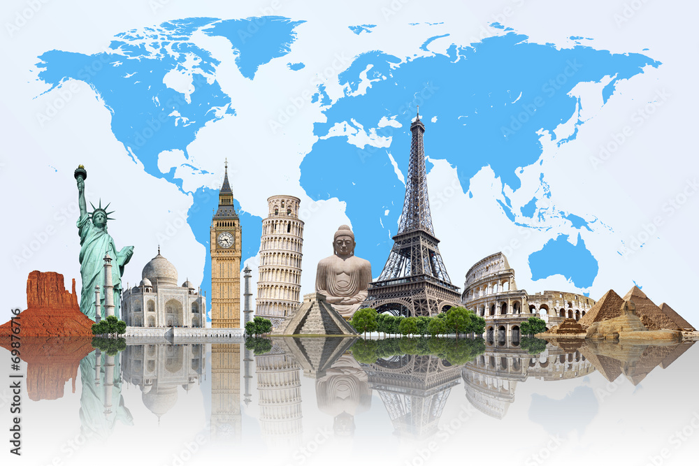 Travel the world monuments concept