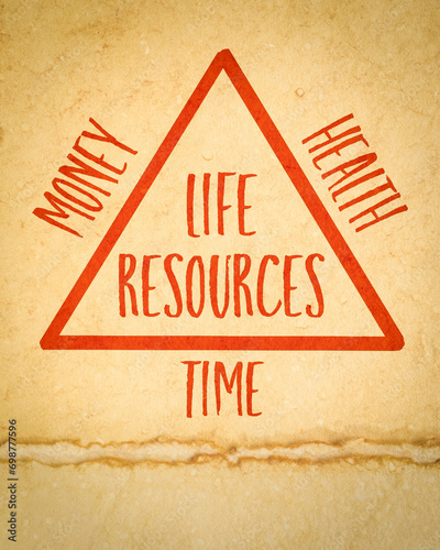 life resources - time, money and health poster, sketch on art paper, lifestyle and finance concept