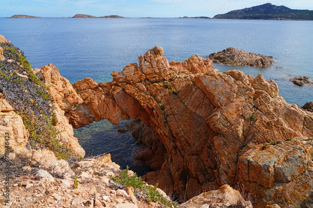 Arco di Cala Romantica, a stone arch in Porto Cervo,Sardinia, Italy