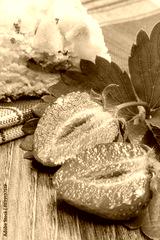 Fresh baked yeast cake with strawberries. Delicious dessert for different occasions