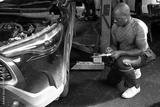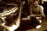 African mechanic worker fixing and checking a car in automobile repair shop