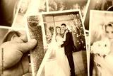 men's hands lay out Beautiful printed wedding photos. Professional photography.