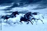 Five horse run gallop in desert at sunset