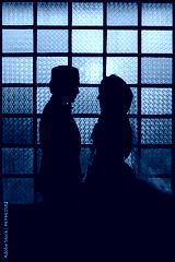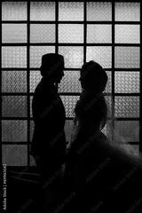 Silhouette romantic Scene of love muslim couples on colorful wal