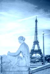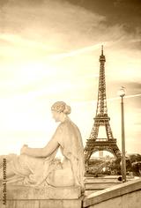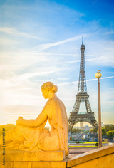 Eiffel Tower from Trocadero garden in sunrise light, Paris, France