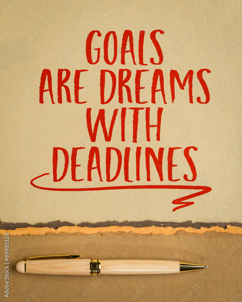 goals are dreams with deadlines - inspirational writing or reminder on art paper, goal setting concept