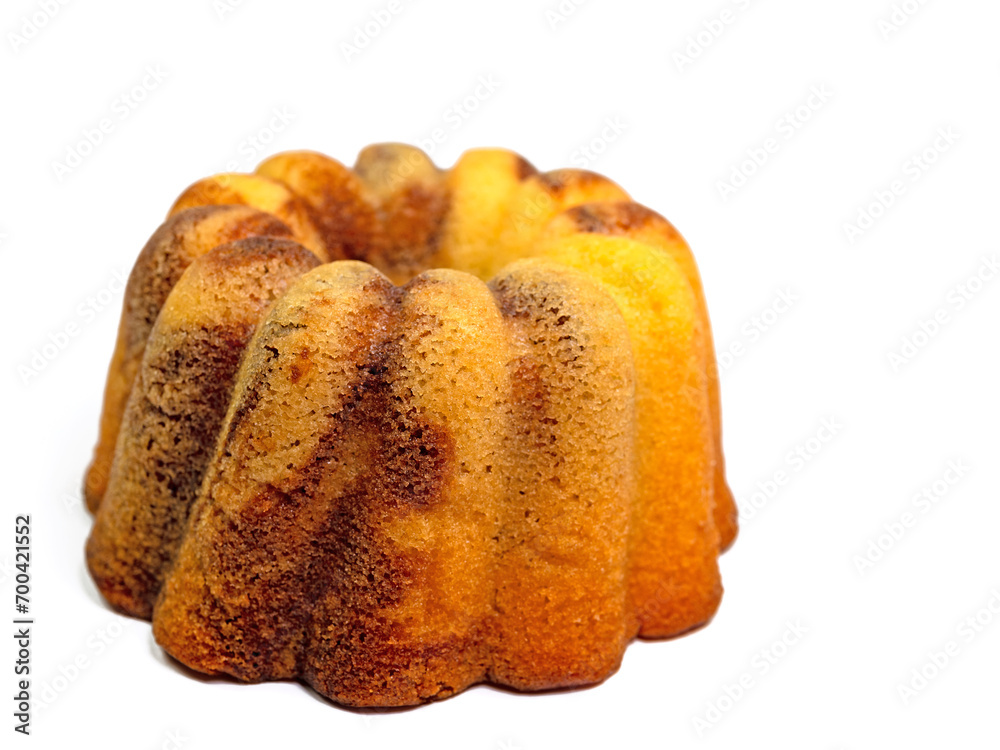Runder Sandkuchen isoliert vor weißem Hintergrund