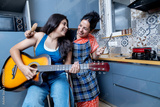 Indian mother and daughter in kitchen having cooking fun. Daughter and Mother having fun together in kitchen