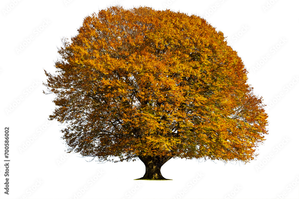 single old beech tree with huge treetop at autumn, isolated over transparent background png