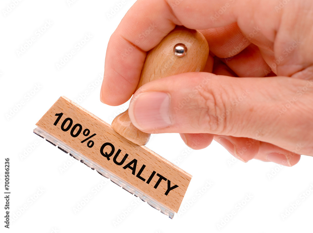 Rubber stamp in hand with the inscription 100 % quality