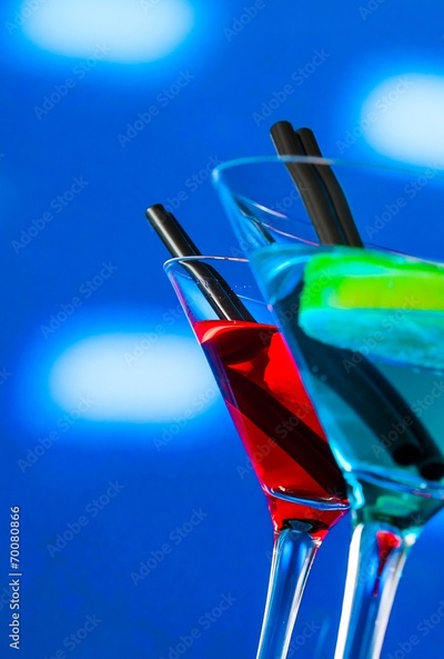 red and blue cocktail on light disco background