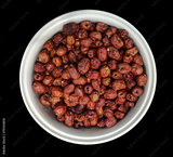 dry chinese monkey apples in white ceramic black isolated