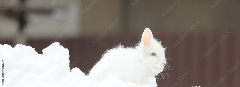 cute young white rabbit in winter