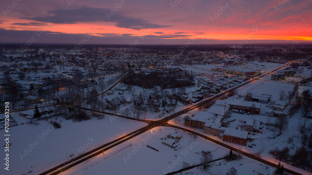 Afterglow over Dramatic Sky at Sunrise. Colorful sky at dawn with a serene and scenic landscape. Cityscape at Sunset with Beautiful Sky and Urban Landscape