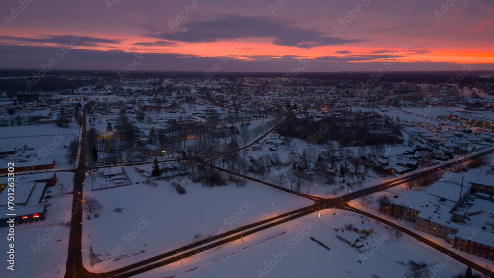Afterglow over Dramatic Sky at Sunrise. Colorful sky at dawn with a serene and scenic landscape. Cityscape at Sunset with Beautiful Sky and Urban Landscape